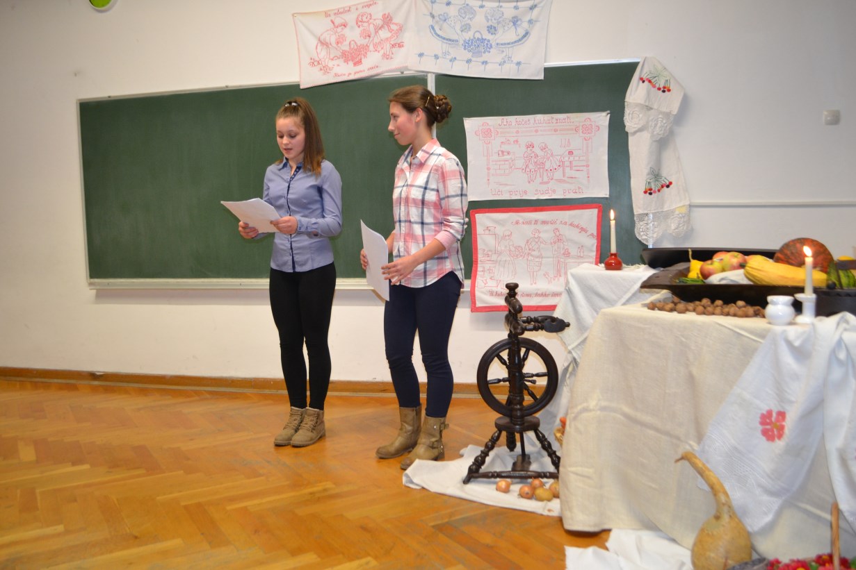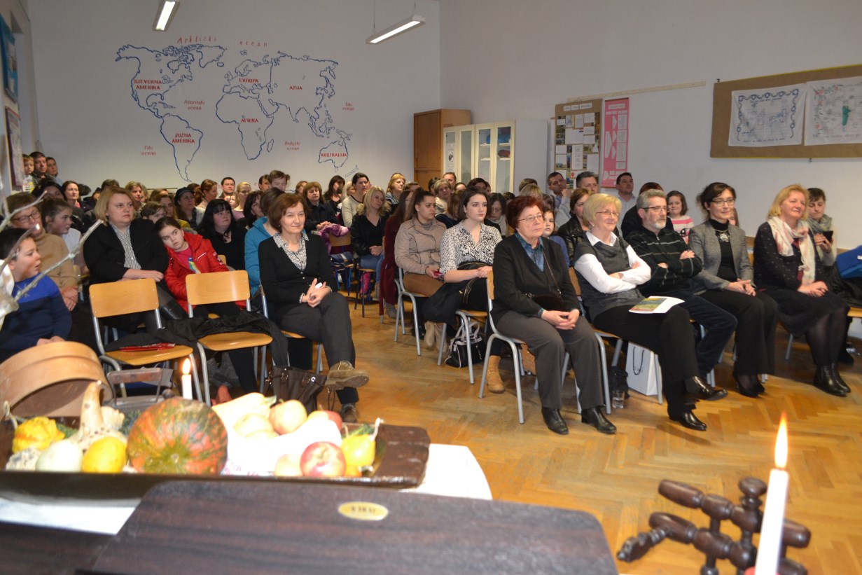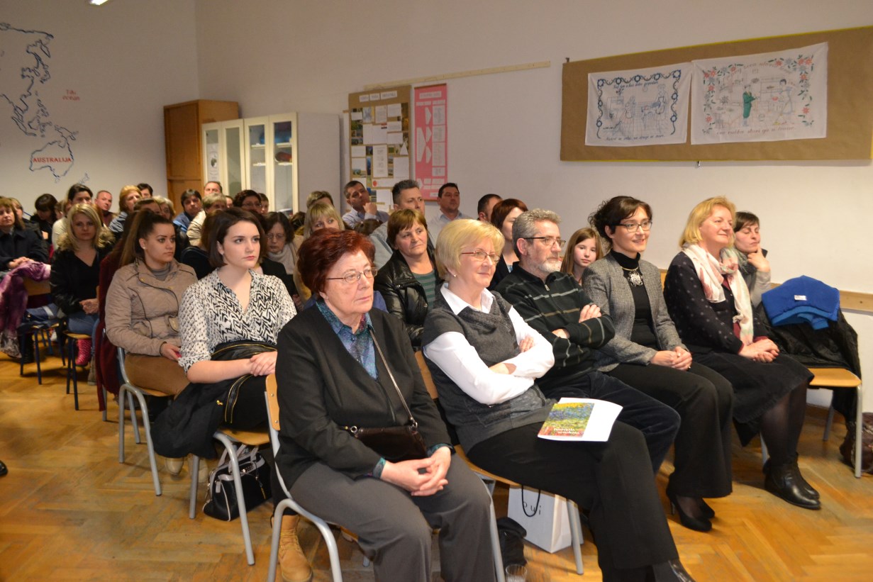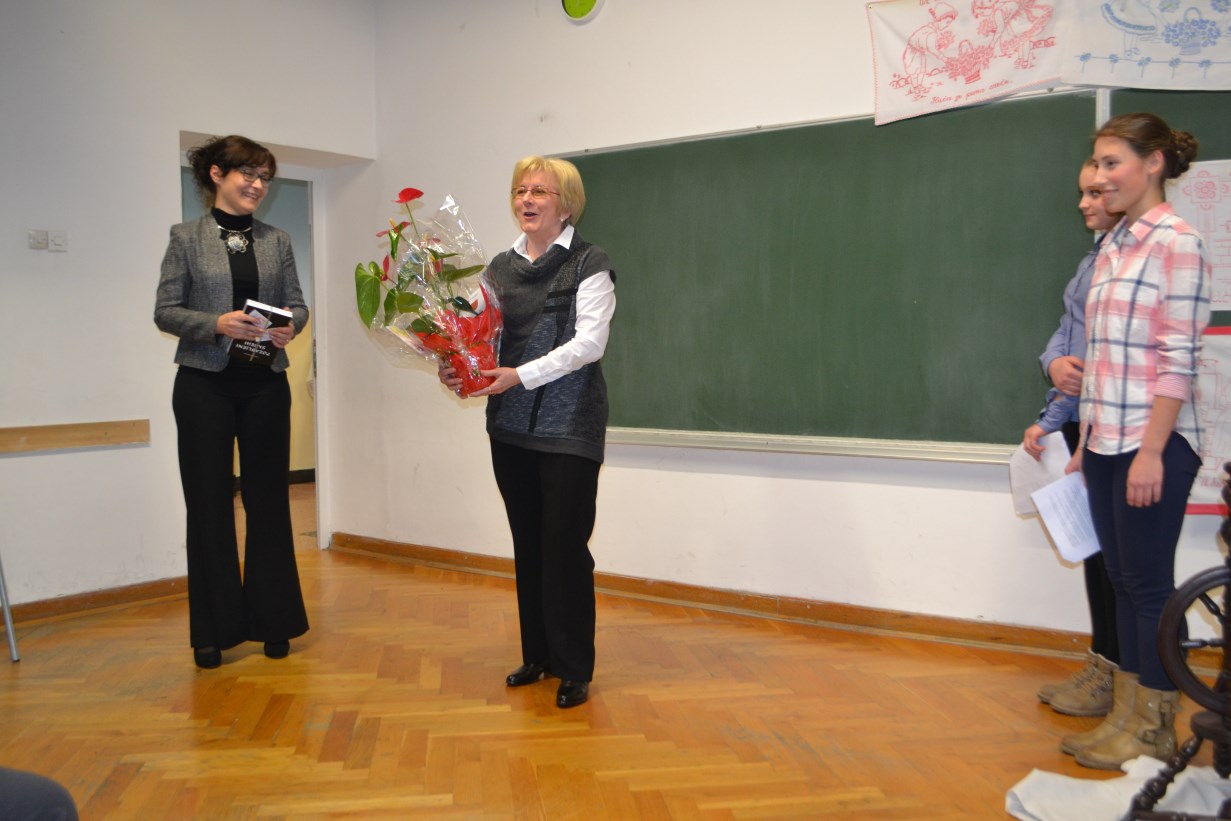 Nakon srdačnog glazbenog pozdrava školskog zbora, voditeljice programa naglasile su važnost očuvanja vlastitog izričaja te važnost svjetske jezične raznolikosti. Gošća ove lijepe kajkavske pjesničke večeri bila je pjesnikinja i likovna umjetnica Nada Jačmenica iz Svetog Križa Začretja koja je čitala svoje stihove na standardu i na kajkavštini. S obzirom da su neki od njih nastali još u školskim klupama nadamo se da je nekog možda nadahnula i potaknula da se i sam okuša u pisanju.