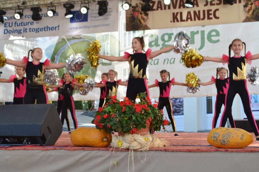 Na veselim Klanječkim jesenima pozornicu su u svojim lijepim kostimima ispunile i uvijek drage gošće, Mažoretkinje Dubrovčan koje su nam došle s tri koreografije, jedna bolja od druge. Glazbeno-plesni studio “Ritam” omogućio nam je da uživamo u izvedbi Tijane Vlaisavljević s nedavnog međunarodnog dječjeg festivala u Brežicama, ali i u plesu svojih malih polaznica.