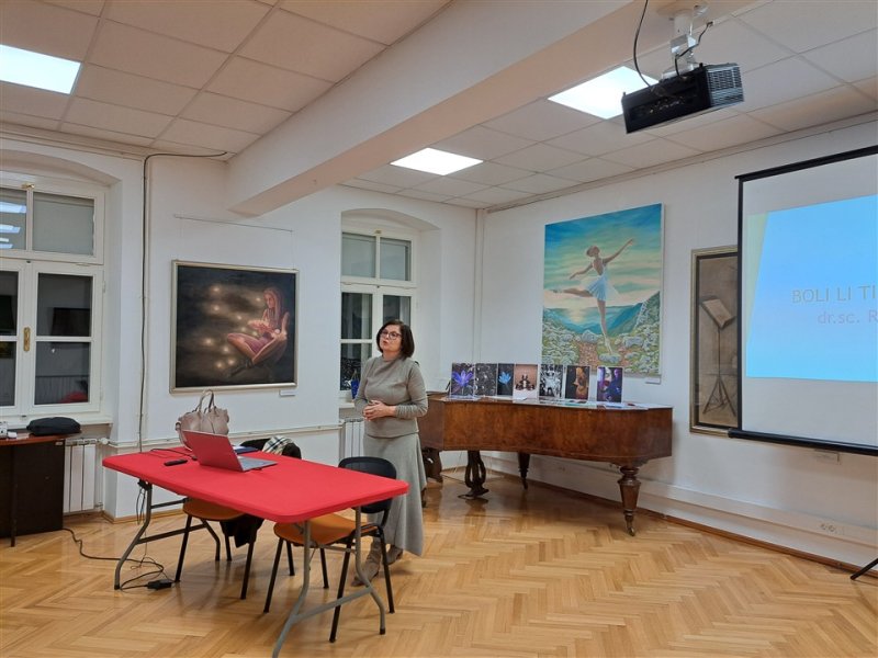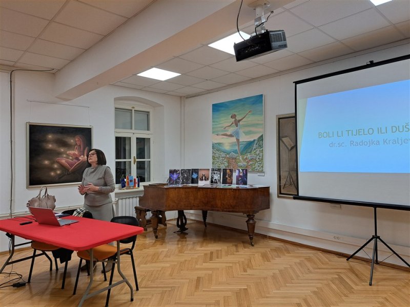 Pred punom dvoranom Gradske knjižnice dr.sc. Kraljević pokušala je prvenstveno objasniti i na zanimljivim primjerima iz dugogodišnje prakse pokazati kako nema osobe koja u nekom trenutku svoga života nije suočena s nekim psihološkim problemom, ne može kontrolirati svoje emocije ili joj je jednostavno “svega previše”, zašto je važno prepoznati taj trenutak i učiniti nešto kako bi se on pokušao riješiti. Zanemarivanje našeg mentalnog zdravlja, stigmatizacija i sram koji su još uvijek prisutni, usko su povezani i s razvojem cijelog niza prepoznatih psihosomatskih bolesti i zato je danas dobro poznato da kada “boli duša, boli i tijelo”. Upravo zato je važan holistički pristup zdravlju i prevenciji koji uključuje kako fizičko zdravlje, tako i ono mentalno i emocionalno. Posjetitelji ovog predavanja dobili su vrlo korisne informacije i o jednostavnim tehnikama koje mogu biti od pomoći kod jednostavnijih, svakodnevnih problema s kojima se svi susrećemo, a grupno su sudjelovali u demonstraciji jedne od mogućih vježbi relaksacije, nakon koje su članice udruge “Korak po korak do zdravlja”, Jasna Gmajnički dr.med. i medicinske sestre Gordana Turjak i Josipa Stojić, mjerile puls. Svakako su dobro raspoloženje, dosjetke i smijeh, koji su popratili ovaj dio predavanja, dobrodošli za prevenciju mentalnog zdravlja, ali i optimalnu brzinu otkucaja srca!